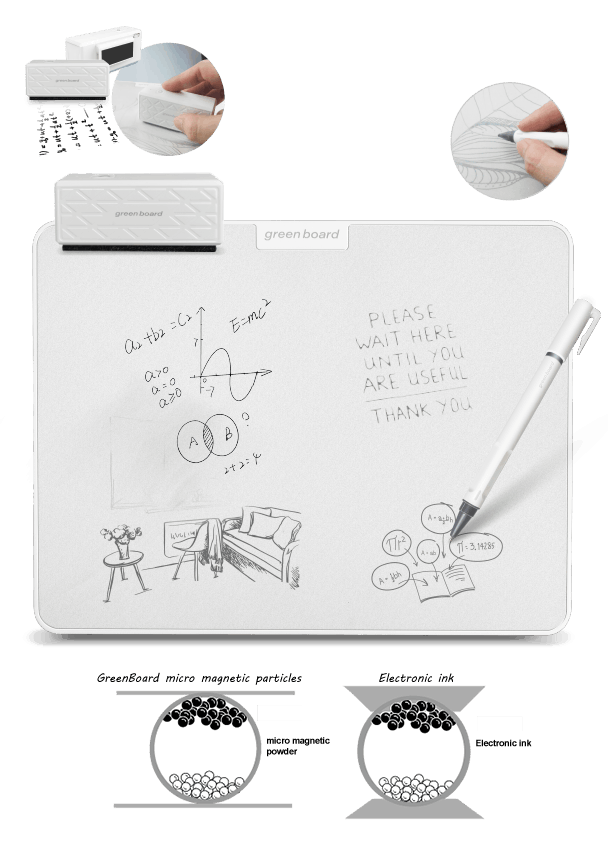 Green Board製品は、環境保護とテクノロジーを融合させた新しい選択肢を提供します。紙を必要とするあらゆる場面で、境界のないコミュニケーションツールとして活躍します。Green Boardの15インチ磁気ライティングボードは、紙なしで環境に優しいライティングツールです。革新的な安定状態表示技術を採用しており、電源や外部エネルギー供給なしで長期的に安定した表示を実現します。多くの有名なKOLにも愛用されており、自由に書いたり、描いたり、注釈を加えたりでき、楽しいライティングの時間を楽しみながら、環境保護にも貢献できます!